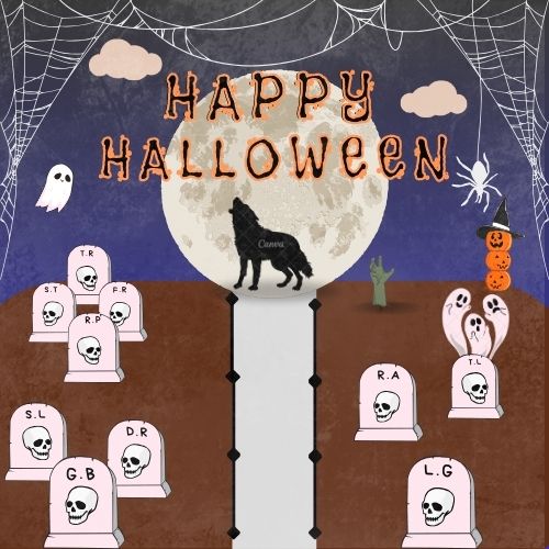 - Utilisation de différentes zones d'ombres afin d'ajouter quelques effets aux différenst éléments décoratifs. Comme par exemple, la main qui sort de terre, ou l'ombre du loup devant la lune.